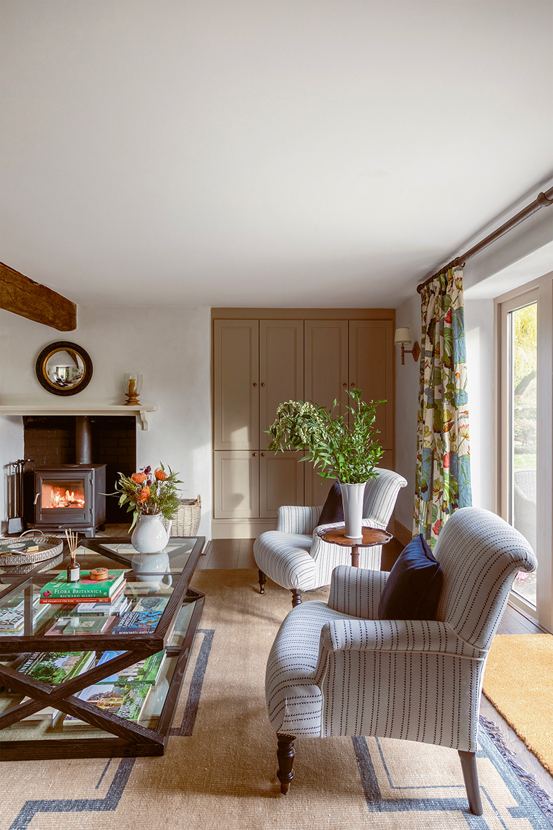 The design focus for this home was to create spaces where people can both entertain and unwind. The aim of the renovation was to preserve the property's original character, retaining its best features such as exposed beams and stone fireplaces, while enhancing comfort and functionality.